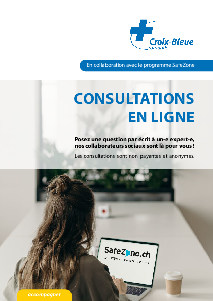 Ici vous pouvez bénéficier à tout moment d'une consultation personnelle au travers du système de messagerie sécurisé de SafeZone.ch : les données sont protégées, seul l'utilisateur y accède.