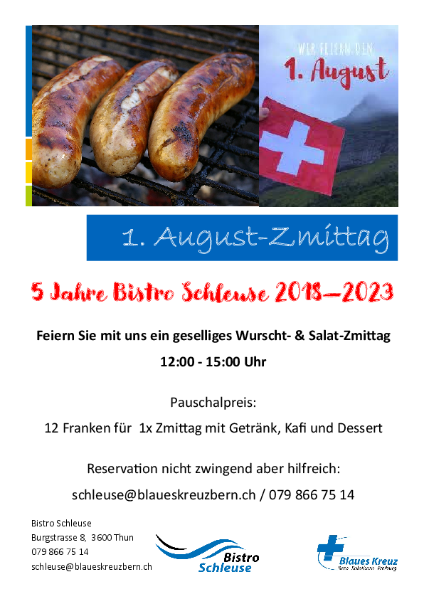 Reservation nicht zwingend aber hilfreich: schleuse(at)blaueskreuzbern(dot)ch, 079 866 75 14