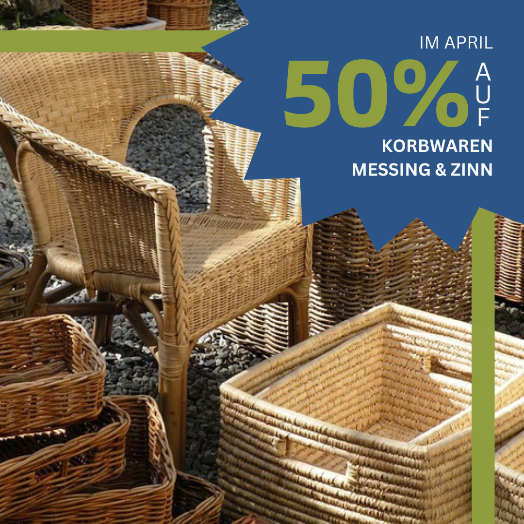 April-Aktion: 50% auf Korbwaren, Messing & Zinn