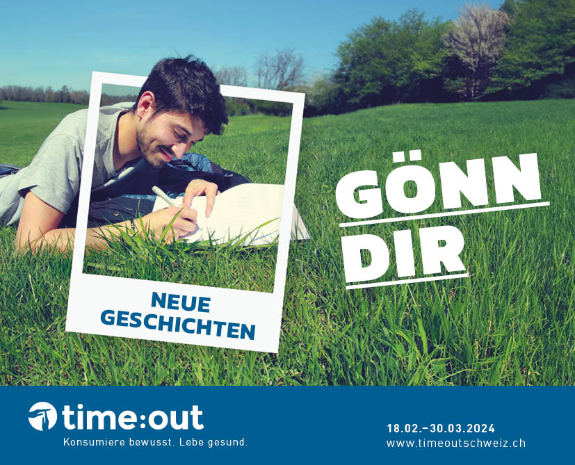 Das time:out des Blauen Kreuzes ermutigt dazu, ein Genussmittel oder eine Verhaltensweise zu reduzieren oder zu pausieren. Auch Klassen, Teams sowie Gruppen können mitmachen und profitieren. Die Aktion wird insbesondere in den Kantonen Bern, Solothurn, Freiburg (deutschsprachiger Teil), Thurgau und Schaffhausen sowie in der Region Basel angeboten. time:out findet im Zeitraum der klassischen Fastenzeit vor Ostern statt – vom Sonntag, 18. Februar bis zum Samstag, 30. März 2024.