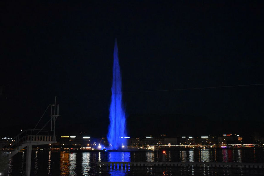 Am Abend war es dann soweit: Der berühmte Genfer Jet d'eau erleuchtete zu Ehren des Blauen Kreuzes in blauer Farbe.