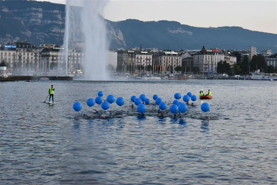 Einige Unerschrockene begaben sich für das Blaue Kreuz in den 16 Grad kühlen Lac Léman.