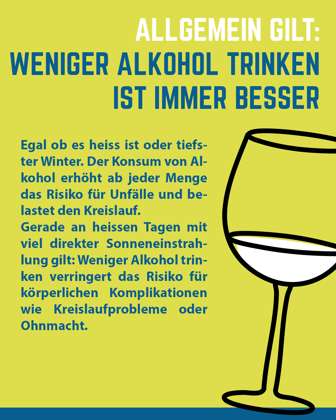 Wenn du beispielsweise bei einem Dayrave, beim Beachvolleyballspielen oder an der StreetParade in Zürich Alkohol trinkst, solltest du folgendes beachten: