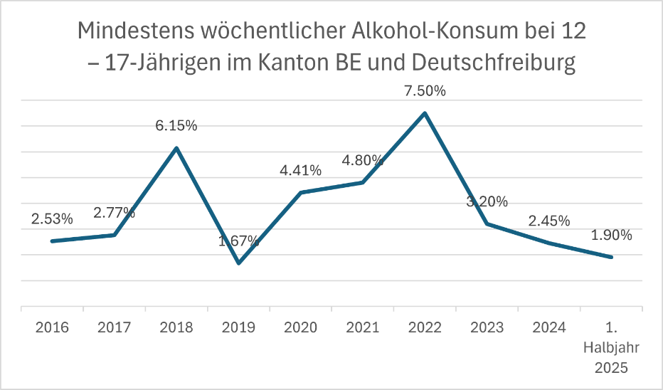 Seit 10 Jahren erfasst das Blaue Kreuz Bern-Solothurn-Freiburg den Substanzkonsum von Jugendlichen im Kanton Bern und im deutschsprachigen Teil des Kantons Freiburg.