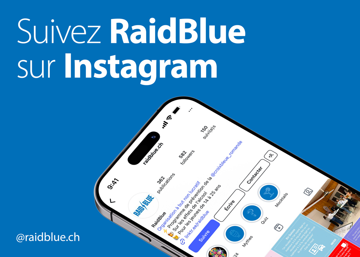 Le programme RaidBlue s'adresse aux jeunes de 14 à 25 ans. Actif sur le terrain sous la forme par exemple de stands de prévention, il est aussi actif en ligne via les réseaux sociaux (facebook et instagram) et la newsletter mensuelle.